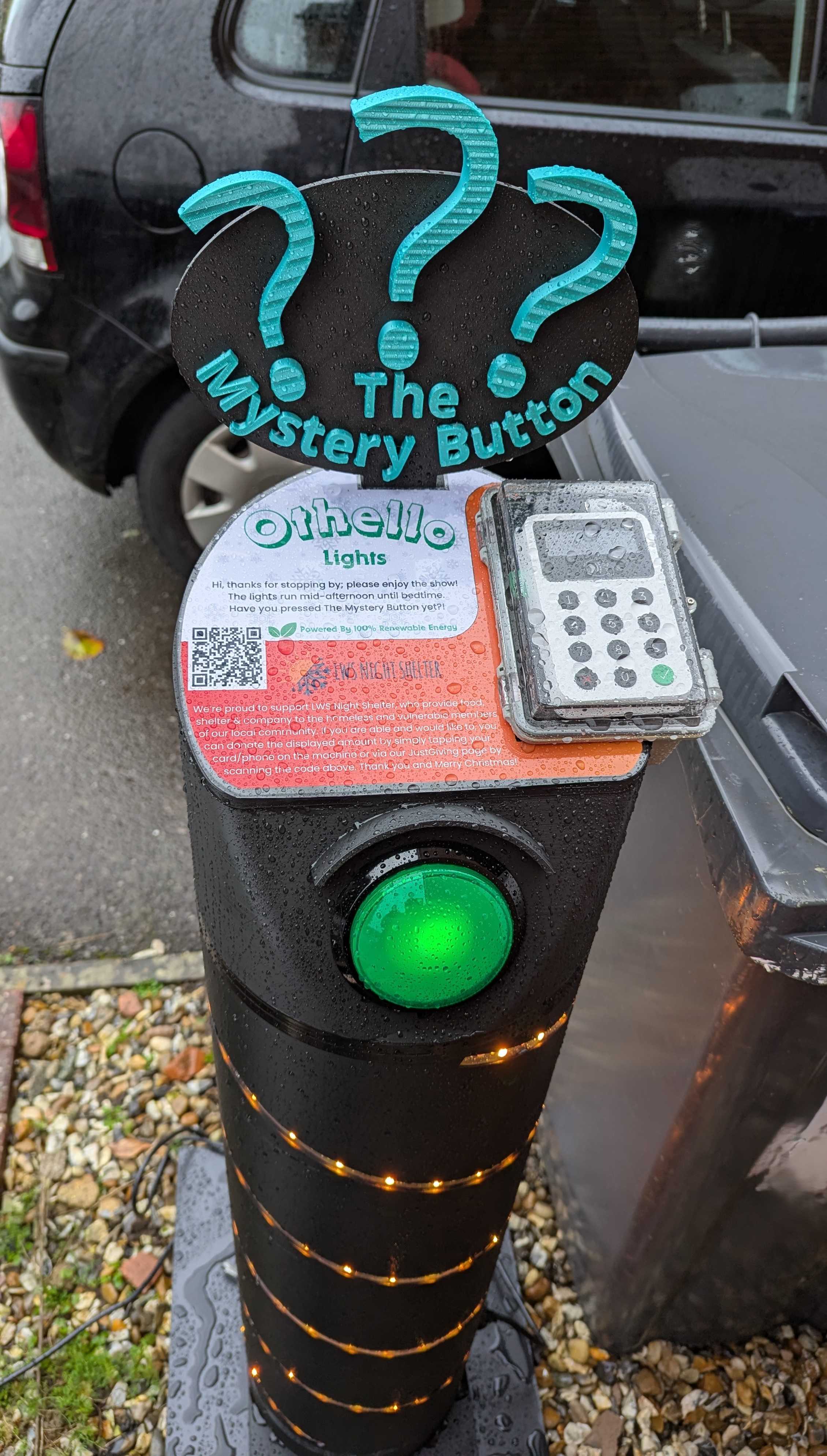 For 2025 I want to make some tweaks to the button pole to light it better, and maybe give the top a new layout so it doesn’t look like you need to pay £3 to press the button – we ended up putting little labels on the button “Free to press” and the card machine “Donations >>>” to make it clearer that they’re unrelated, as some people were confused or thought it was outrageous to pay that much for a press (and I agree – it would be! Which is why it isn’t…)